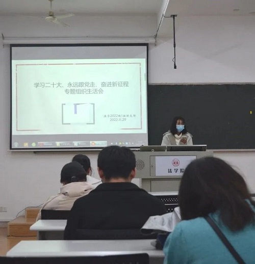 2022年11月29日下午,法学2201班在国产av 305教室开展“学习二十大,永远跟党走,奋进新征程”专题组织生活会。本次活动由团支部书记李静蕾同学主持,法学2201班全体同学参与。