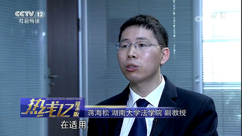 (图:蒋海松担任总撰稿的系列法治纪录片《与法同行》在湖南电视台播出)