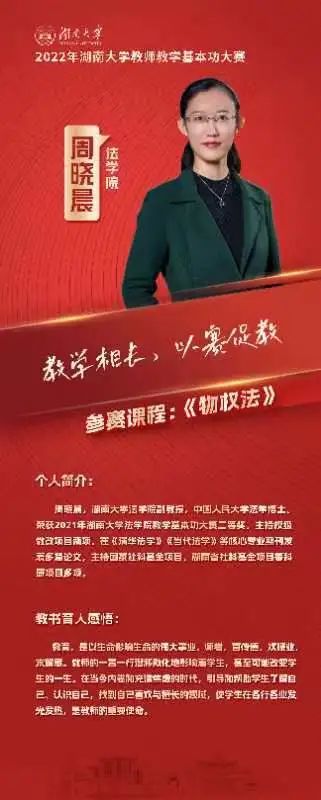 我院周晓晨老师通过学校督导随堂听课、教学设计等环节的层层选拔,从全校众多参赛选手中脱颖而出,获得参加文科组决赛的资格。决赛中,周晓晨老师以法学专业核心课程《物权法》参赛,选取建筑物区分所有权中的“住改商”问题进行讲解。周老师通过身边的生活事例引入主题,结合司法案例和法学基本原理,对《民法典》第279条进行了生动有趣的讲解。短短10分钟的现场授课,周老师亲切自如、深入浅出的讲课风格给现场评委和观众留下了深刻印象。最终,周晓晨老师荣获2022年国产av