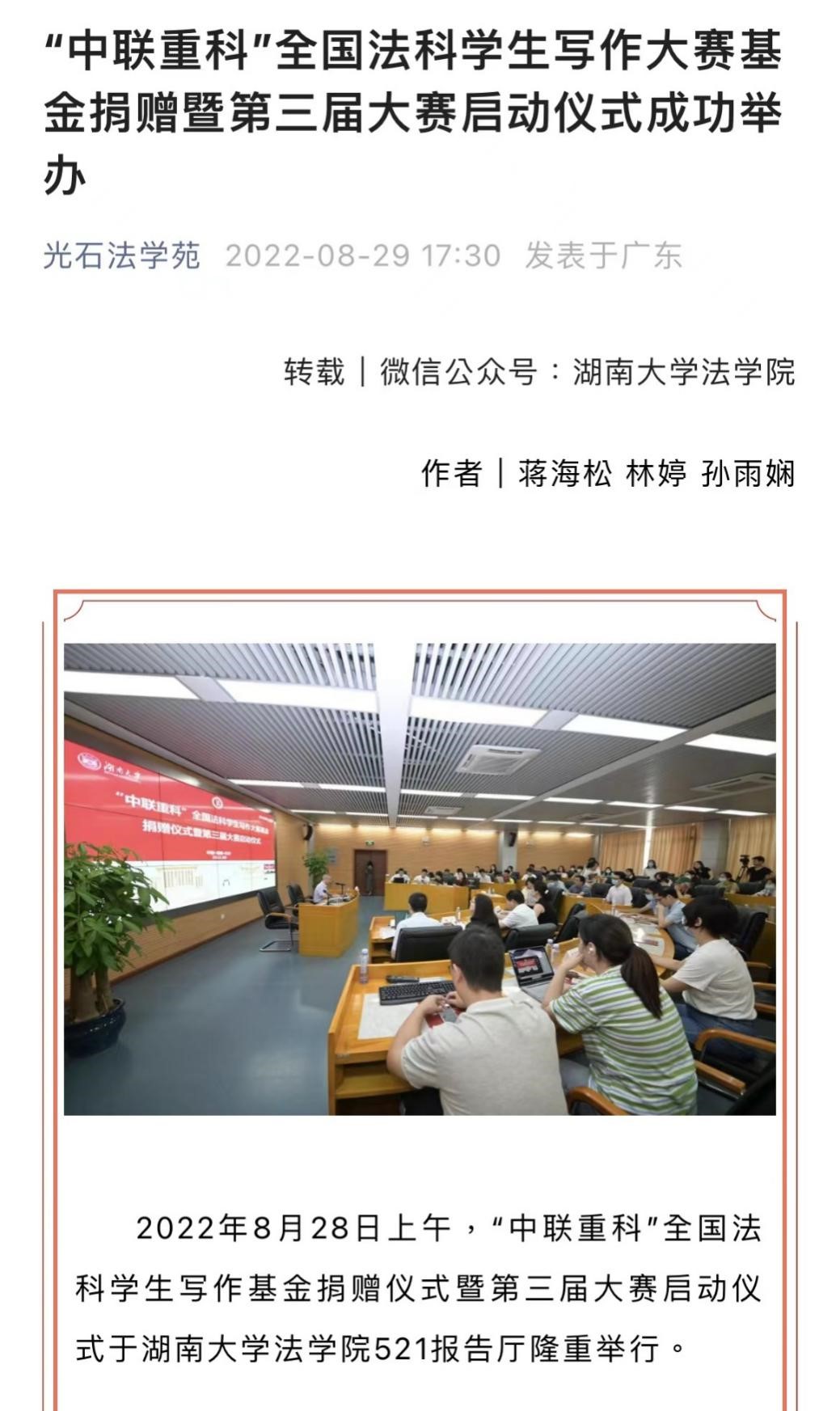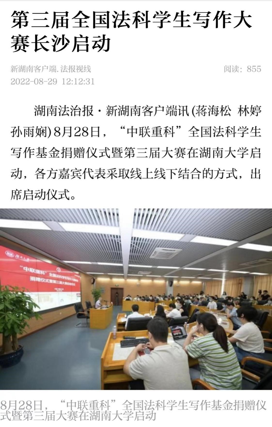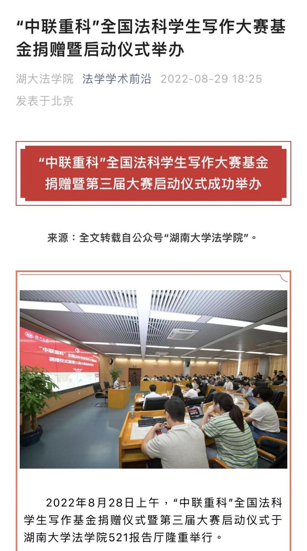 2022年8月28日上午,“中联重科”全国法科学生写作基金捐赠仪式暨第三届大赛启动仪式于国产av
