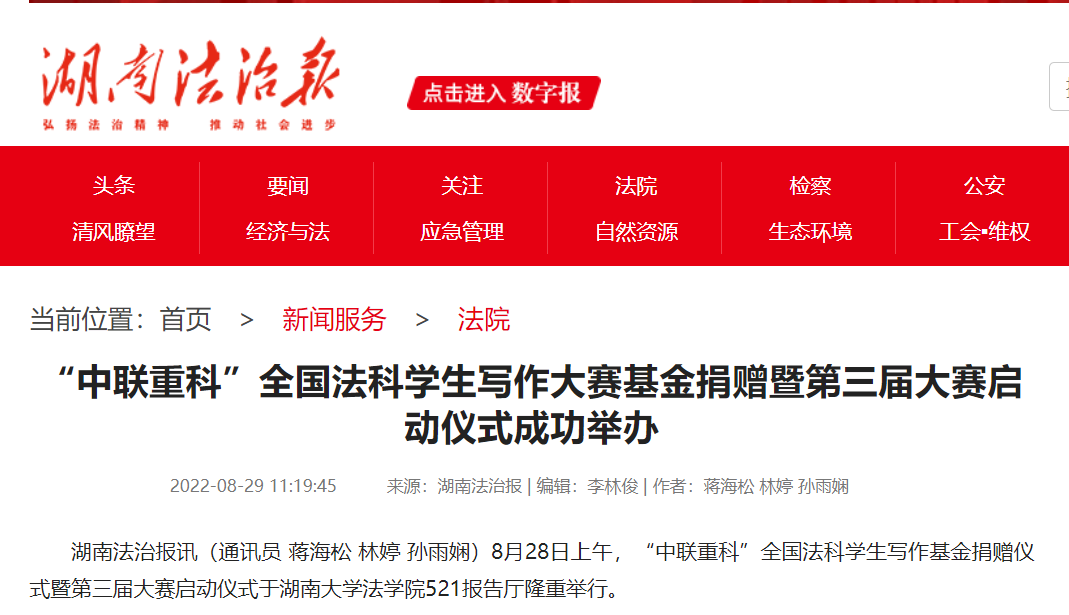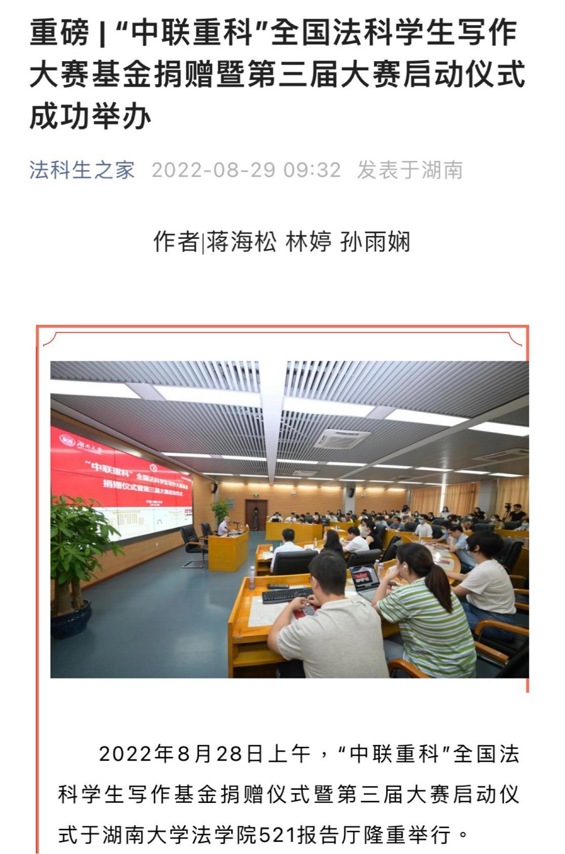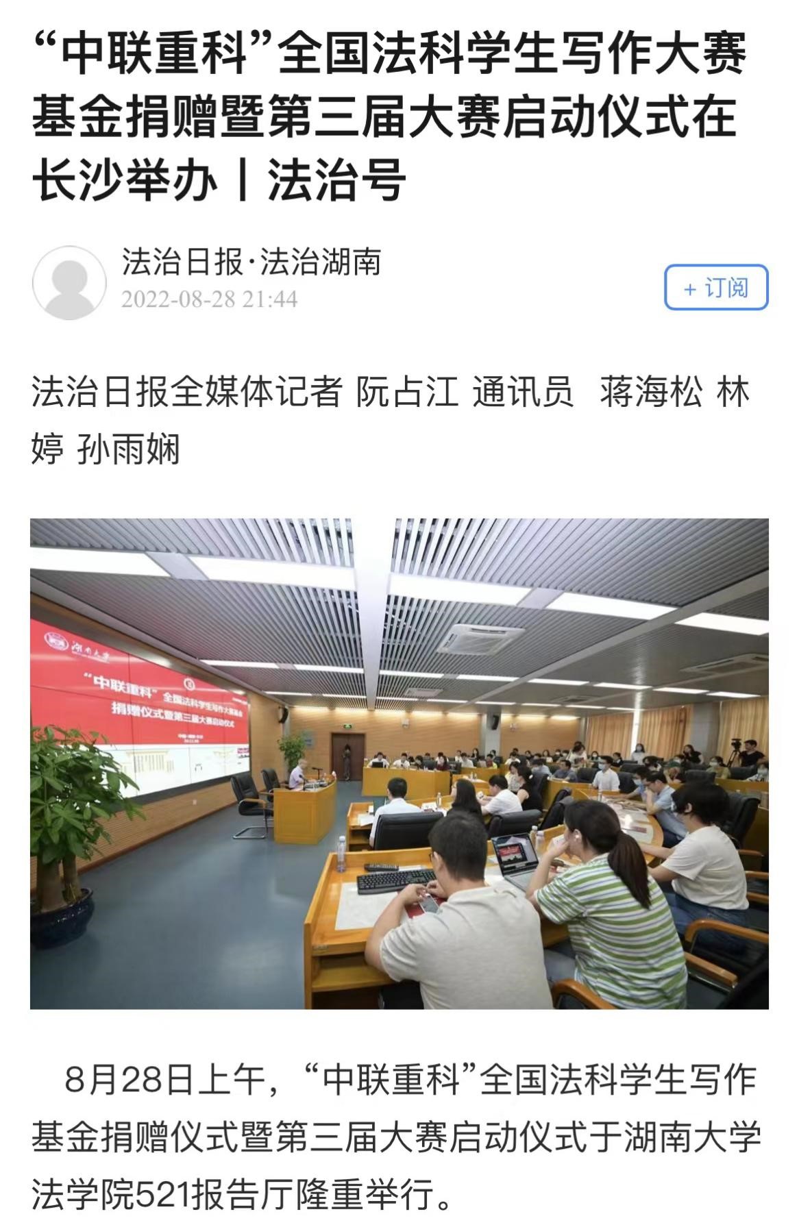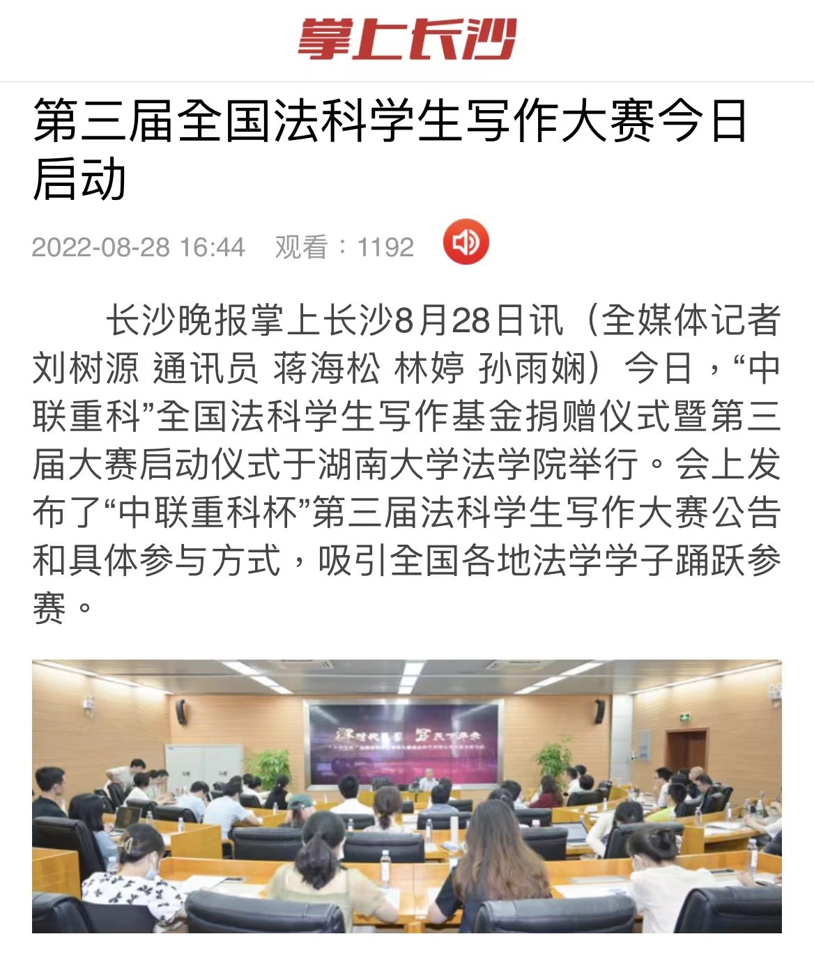 2022年8月28日上午,“中联重科”全国法科学生写作基金捐赠仪式暨第三届大赛启动仪式于国产av