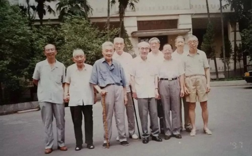 (1997年7月29日在上海的部分《元照英美法词典》审订学者合影,左起分别为潘汉典、周枏、卢绳祖、许之森、蔡晋、徐开墅、高文彬、浦增元、郭念祖诸位先生。)