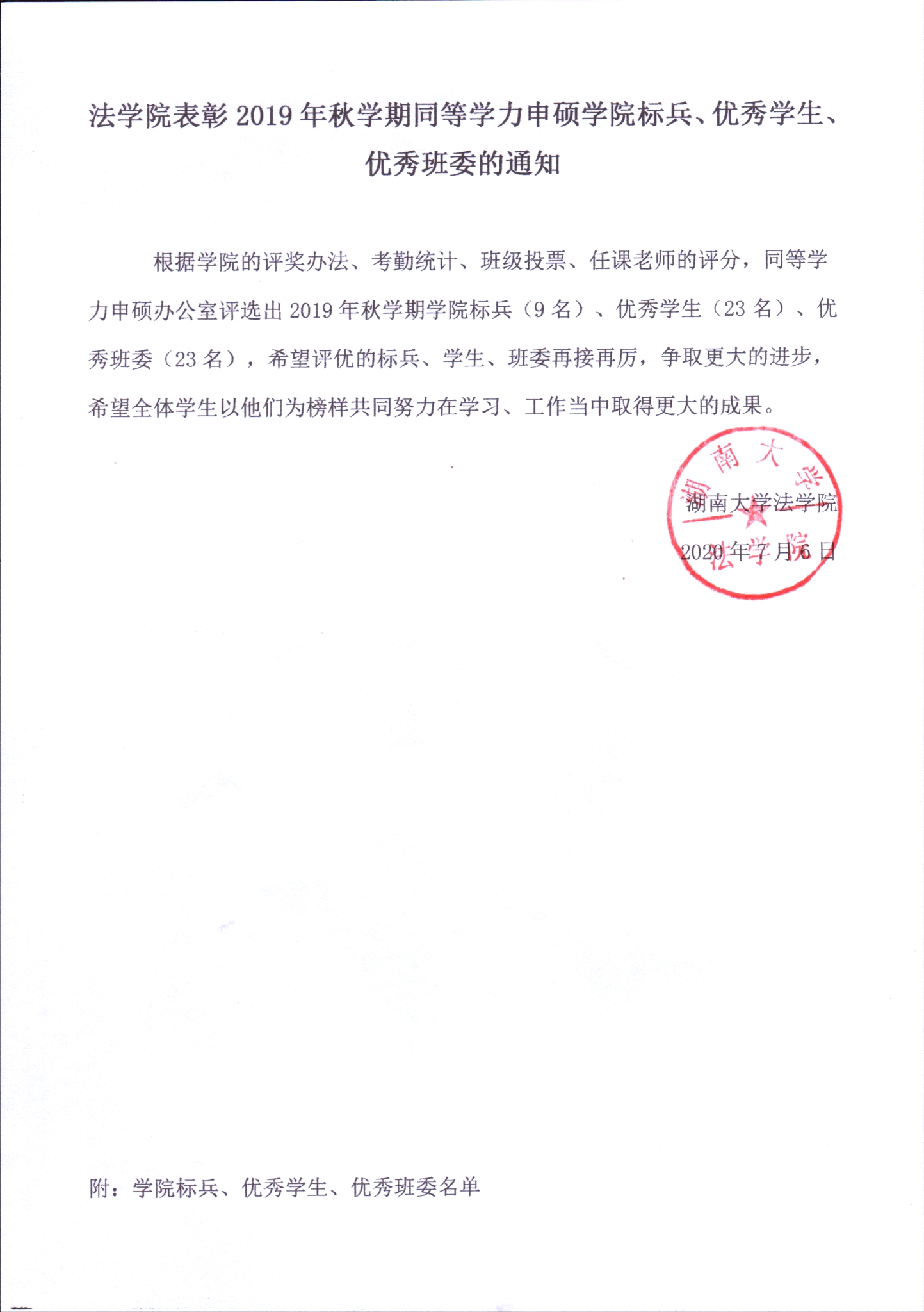 国产av 表彰2019年秋学期同等学力申硕学院标兵、优秀学生、优秀班委的通知