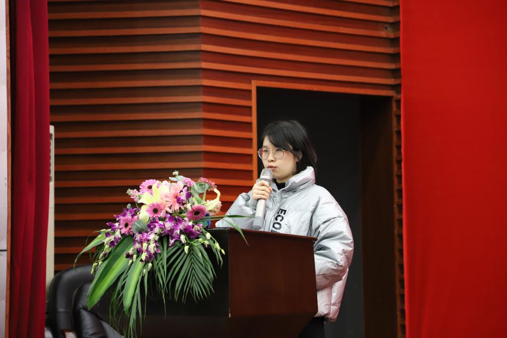 第五篇章由申硕办王蕾老师作为班主任代表发言。她主要从两方面对同学提出要求与注意事项:一是课程修读阶段的考勤与考试占比。作为在职同学,各位班主任深知兼顾家庭、工作与学习的不易,因此仅希望同学们能够在生活间隙保持一定的上课频率,从而达到较好的学习效果,不枉费自己的时间与精力成本;二是课程修读与教务查询、资料下载等贯穿整个学习过程的事项办理。学校为方便学生自主查询与核对,已将上述所有功能均集合至申硕办公众号中,学生可方便的进行日常查看。最后她祝福各位抱持着人文关怀与家国情怀,向法而行,不负韶华,虽然始于寒冬,但必收获春光。