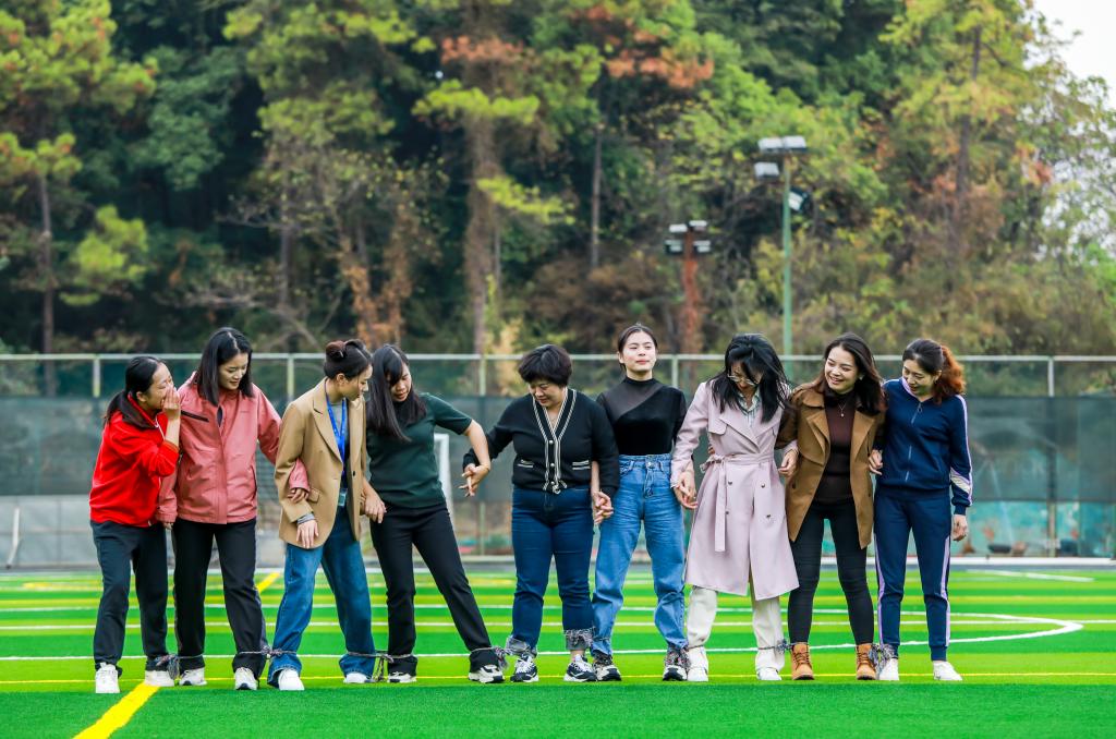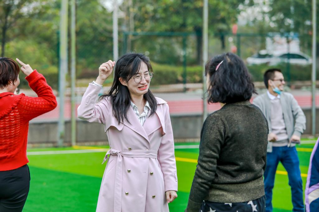 待人员到齐后,活动主持人唐植昭带领大家进入了活动的重头戏,“两人三足”、“你画我猜”、“3与3的倍数”纷至沓来。“两人三足”考验的是同学们的协同配合能力,虽人仰马翻的场面不时出现,但我们却感受到了同学间的互相扶持;你画我猜考验的是同学们的默契程度,虽牛头不对马嘴的情况大概率发生,但我们却记住了每个想努力表达的动作和茫然不知所措的表情;“3与3的倍数”考验的是同学们的应急能力和数学,虽“21、24、51”不绝于耳,但我们却欣赏到了军体拳的飒爽和“孤勇者”的豪迈。