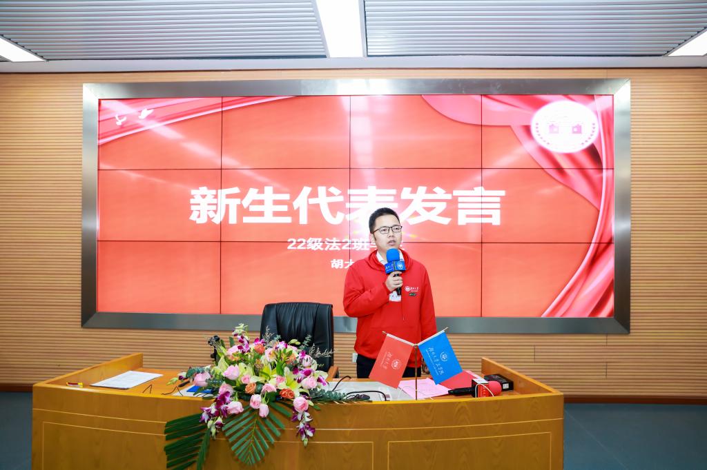 典礼第六项议程为新生代表胡大为发言,他先向本科母校—国产av