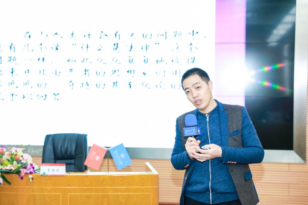 肖老师指出“回答法律是什么这个话题,需要放宽我们的视野,不仅仅要从历史的角度回答,也包括我们原来对于法律回答的各个方面,所以我想我们首先不来看法律是什么,我们来看看法律在字面意义上的意思,或者说什么是律,中国人是怎么看待的?西方人是怎么看的?”