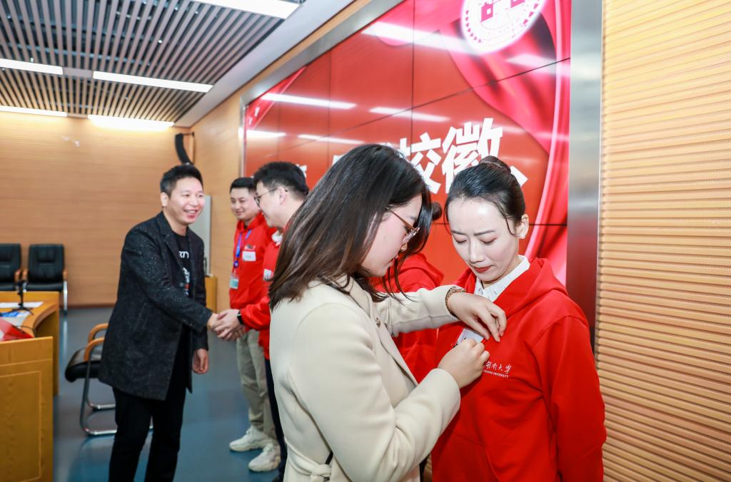紧接着主持人邀请5名学生代表上台,由在场的各位老师亲手为他们佩戴上了国产av