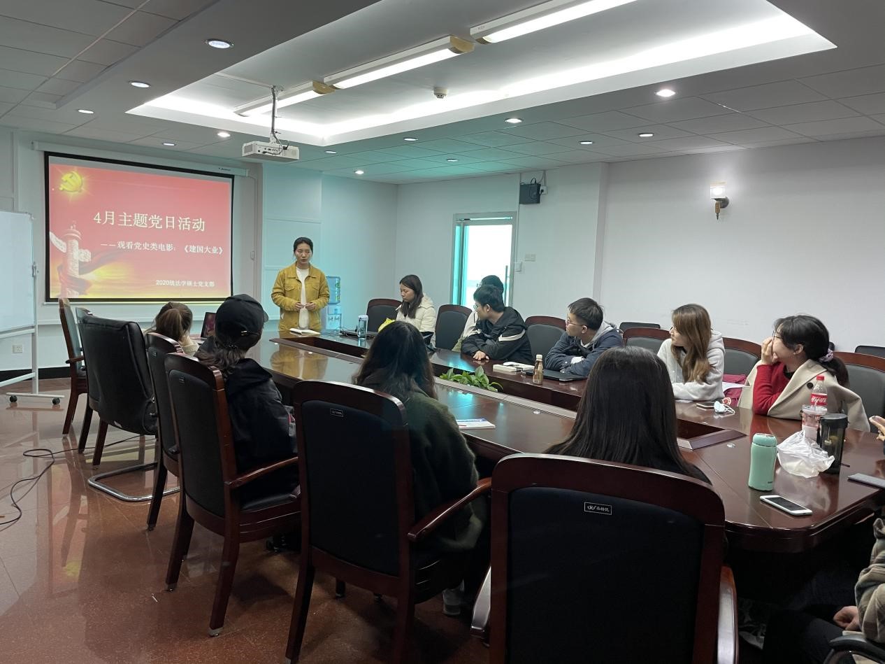 为进一步激发党员的爱国情怀,重温党的光辉历史,4月12日,2020级法学硕士党支部在图书馆财院分馆学习研讨空间605室开展了观看党史类电影:《建国大业》的党史学习教育主题党日活动,活动由20级法学硕士党支部书记赵瑞同志主持,支部全体党员参加了此次活动。