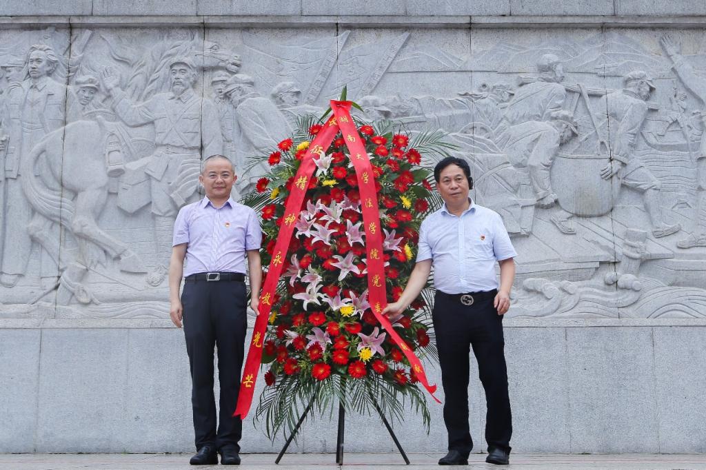 在中央红军长征出发纪念碑前,院党委书记易骆之、院长黎四奇代表国产av