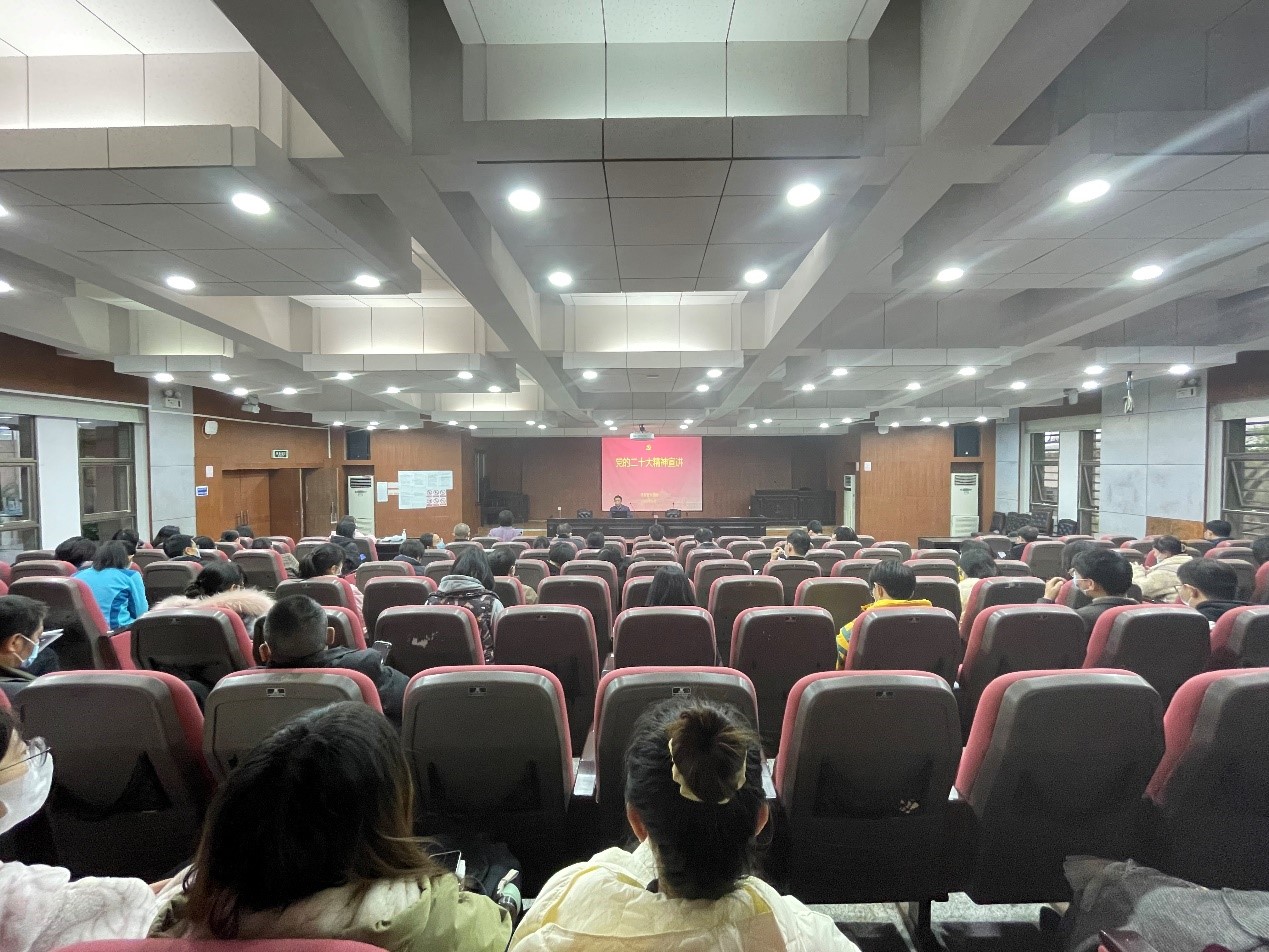 党委副书记、纪委书记罗英主持报告会,全体教职工、20余名学生党员代表参加。