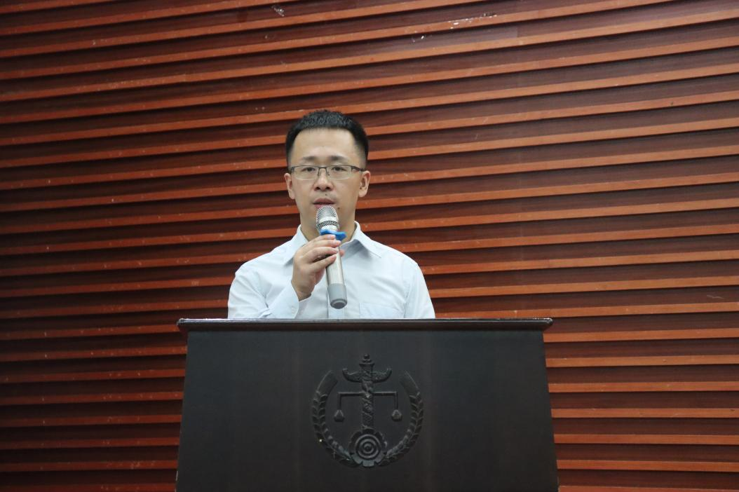 开班仪式结束后,易骆之以《中国共产党的光辉历程》为题,进行第一次党课讲授。他以“开天辟地、改天换地、翻天覆地、惊天动地”十六字为主线,系统地介绍了中国共产党在新民主主义革命时期完成救国大业、在社会主义革命和建设时期完成兴国大业、在改革开放和社会主义现代化建设时期推进富国大业、在中国特色社会主义新时代推进并将在本世纪中叶实现强国大业的光辉历程。在党课的最后,易骆之向学员们提了三点要求:一是加强理论学习,提高对党的认识;二是树立正确的人生观、世界观、价值观,端正入党动机;三是努力学习专业知识,将自己打造成有理想有担当的法治人才。
