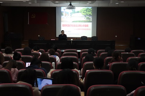 本科生和研究生入党积极分子讲授“培育和践行社会主义核心价值观,以实际行动争做合格党员”主题党课。