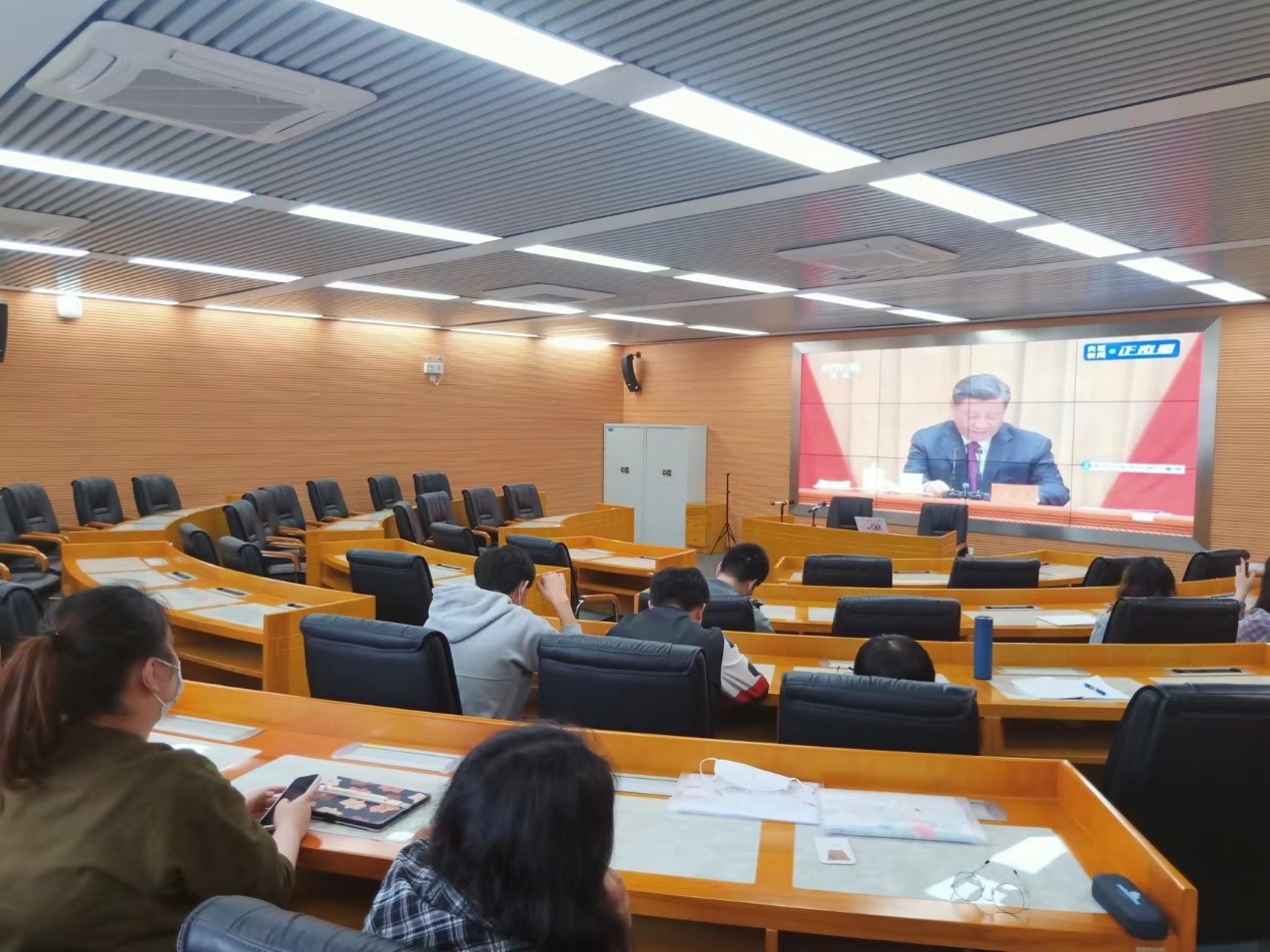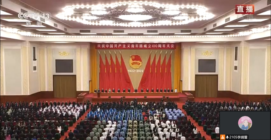 庆祝中国共产主义青年团成立100周年大会于2022年5月10日上午在北京人民大会堂隆重举行,中共中央总书记、国家主席、中央军委主席习近平出席大会并发表重要讲话。为学习习总书记重要讲话精神,国产av 于5月10日设置分会场组织学生代表集中观看,并以团支部为单位收看大会,大会结束后,同学们就总书记的讲话精神畅谈心得,掀起学习热潮。