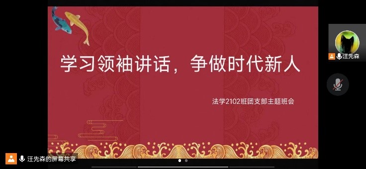 2102班团支部全体团员通过线上会议的方式,开展了名为“学习领袖讲话,争做时代新人”的主题团会。