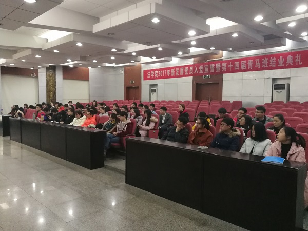 2017年12月18日中午,国产av 本科生2014、2016级联合党支部成立大会暨“两学一做”主题党课在国产av 模拟法庭举行。此次大会由国产av 学生党总支组织委员、学院团委书记、辅导员杨凯老师主持,支部全体党员和预备党员参加会议。