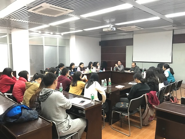 接下来各位同学踊跃发言,分享了各自学习十九大报告的心得体会。樊笑迎和杨洁同学从宏观层面论述我国社会主要矛盾转化的合理性;王新雨同学详细阐述了从共建、共享的“两共”到共建、共享、共治的“三共”的演变过程,以及社会治理格局内涵中的可挖掘之处。